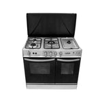 IZone Gas 3 Burner Cooking Range 1300 Deep Fry Metal Features: WCM-1300DF 3BRN METAL 3 Gas Burners Manual ignition System Grill and Bakery System Tempered Oven Glass Front Tempered Glass Facility Stain Less Steel Panel...